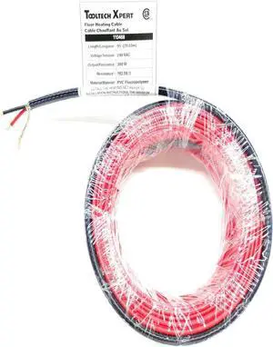 Floor Heating Cable, 240V - 95ft, 300W, Red, Male-to-Male Connector, Compatible with Uncoupling Membranes & Thermostats