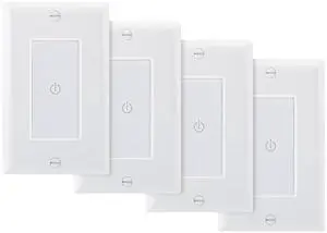 Wengart Wall Touch Light Switch Capacitive Touch Switch with Led Indicator 480W Tungsten Lamp/Incandescent Lamp 150W LED,ETL Listed,White (4Pack)