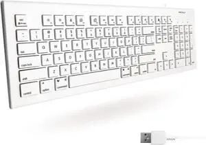Macally Full Size USB Wired Keyboard (MKEYE) for Mac and PC (White) w/ Shortcut Hot Keys