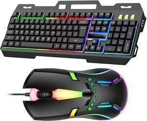 lihsong Gaming Keyboard Combo 104 Keys 1200 DPI Metal Ergonomic RGB Backlit Mechanical Feel USB Wired Keyboard for PC