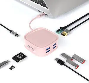 LTLWSH 10-in-1 USB C Hub Docking Station, USB-C PD+HDMI+RJ45+USB-C(2.0Data)+SD/TF+USB3.0x1+USB2.0x3 Multiport USB-C Adapter,Pink