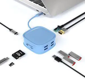 LTLWSH 10-in-1 USB C Hub Docking Station, USB-C PD+HDMI+RJ45+USB-C(2.0Data)+SD/TF+USB3.0x1+USB2.0x3 Multiport USB-C Adapter,Blue