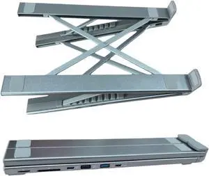6-in-1 Adjustable Laptop Docking Station with 100W PD Fast Charging, Aluminum Alloy Stand for MacBook Pro Air, iPad, Dell, for HP, Lenovo - Silver