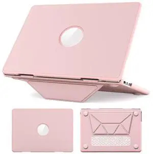 Case for MacBook Pro 14 inch 2024-2021 A3112 A3185 A3401 A2918 2992 2779 M4-M1, Shock-Absorbing Protection Case with Magnetically-Folio Stand &Mouse Pad/Bag (Leather-Like Color Black) PINK