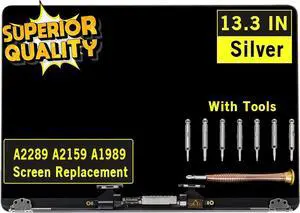 GBOLE Screen Replacement for MacBook Pro A1989 A2289 A2159 EMC 3214 EMC 3358 EMC 3348 EMC 3456 EMC 3301 LCD Screen Display Full Assembly 2560x1600 (Silver)