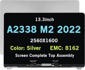 13.3inch LED LCD 2560x1600 Screen Digitizer Replacement Whole Hinge-up Assembly for MacBook Pro A2338 M2 2022 MNEQ3LL/A MNEP3LL/A MNEJ3LL/A MNEH3LL/A EMC 8162 (Silver)