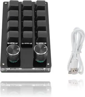 12 Key Mini Mechanical Gaming Keyboard,Macro Keyboard Knob with Type C to USB Interface Mini One-Handed Mechanical Gaming Keypad One-Click Start for Linux OS X(Black)