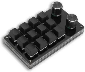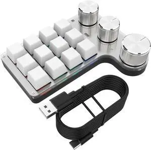USB Mechanical Gaming Keyboard, 12 Keys 3 Knobs Macro Mechanical Keyboard, Custom Knob KeyPad with Hot Swappable Blue Switch