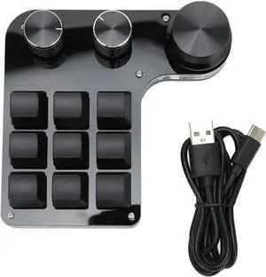 9 Keys Keypad, USB Universal 3 Knobs Macro Keyboard Plug and Play for Office