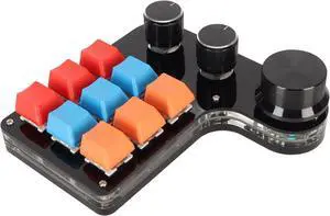 One Handed Programmable Mechanical Keyboard, 9 Keys Multifunctional Gaming Keypad with 3 Knobs, USB Mini Macro Mechanical Keyboard for Office, Blue Switches