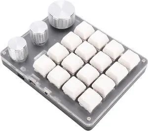 Programmable Macro Keypad, Portable 16 Key Keyboard Red Switch with 3 Modes, 3 Knobs for Office Game Music (White)