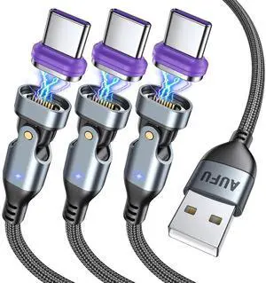 Magnetic Charging Cable 4 Pack (3.3ft/6.6ft/6.6ft/10ft), 540 Degree Rotating Magnetic Phone Charger Cable, 3 in 1 Nylon Braided Magnetic USB Cable for Type C, Micro USB