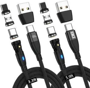 Magnetic Charging Cable (6-Pack,1.6+3.3+3.3+6.6+6.6+10ft) 540° Rotation Magnet Phone Charger USB C Cable 3A Fast Charging Magnetic Charger Cable with LED Light for Micro USB Type C Device