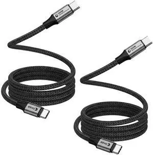 2M USB-C to USB-C Magnetic Cable, 100W Fast Charging & Data Transfer, Durable Nylon Braided, 2-Pack (Grey)
