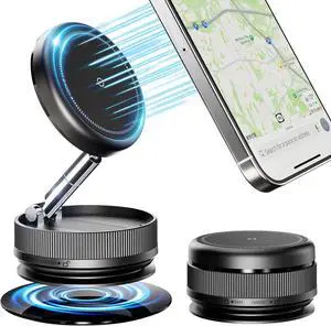 Upgraded 360° Nano Gel Vacuum Magnetic Phone Holder Car Phone Holder for Magsafe[108+LBS Strongest Suction & 3000gf Strongest Magnetic] Suction Cup Phone Mount for Car/for iPhone 16 Pro Max