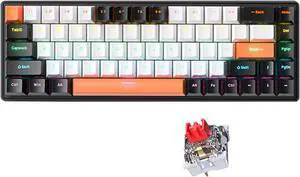68-Key Mechanical Keyboard 68 Keys Layout FN Shortcut Full -Ghosting Backlight Multiple 0 Lighting Modes Detachable Cable Dual-Color Injection Keycaps Durabili Black & White & O x Red axis
