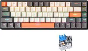 68-Key Mechanical Keyboard 68 Keys Layout FN Shortcut Full -Ghosting Backlight Multiple 0 Lighting Modes Detachable Cable Dual-Color Injection Keycaps Durabili Multi-System Gray & Low & O x Blue axis