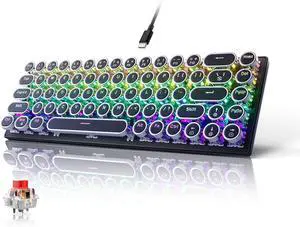 65% Wired Mechanical Gaming Keybaord, Compact 68 Keys Mini Keyboard with Arrow Keys, RGB Rainbow Backlight, Hot-swappable Switch, Retro Round Keys for PC/Laptop Gamer