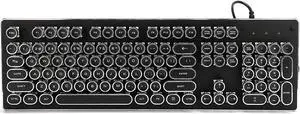 Mechanical Gaming Keyboard, Retro Punk Typewriter Style USB Wired Computer Keyboard with RGB Backlit and Round Keycaps Plug and Play Black Ergonomic PC Keyboard for Laptop Gamer