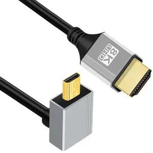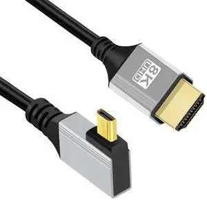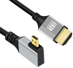 HDMI 2.1 Cable,HDMI Male to Micro HDMI Male 90 Degree Right Angled 8K@60Hz 4K@120Hz 48Gbps Ultra High-Speed Gold-Plated Cable 1.64FT/0.5M for TV, Monitor, Computer