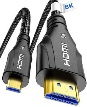 HDMI 2.1 Cable,HDMI Male to Micro HDMI Male 90 Degree Left Angled 8K@60Hz 4K@120Hz 48Gbps Ultra High-Speed Gold-Plated Cable 1.64FT/0.5M for TV, Monitor, Computer