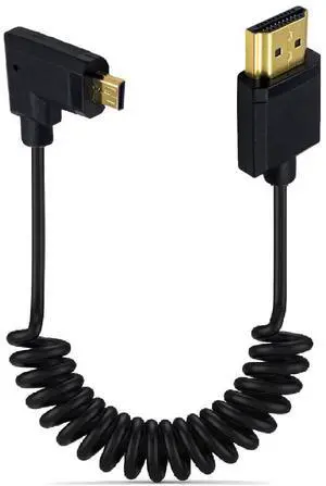 Micro HDMI 2.0 Male to HDMI Male 4K 60hz Stretch Coiled Cable Right Angled 90 Degree for HDTV Computer Laptop Monitor