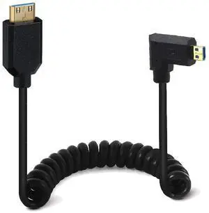 Micro HDMI to HDMI Cable Coiled 8K HDMI 2.1 Telescopic Cable High Speed Cable Support 120Hz 48Gbps Dynamic HDR for Digital Cameras (Down Angle)