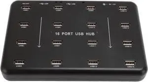 16 Port USB2.0 Hub, Expand 1 USB Port to 16 Ports, High Speed Data Transfer, Short Circuit Alarm, for Card Reader Memory Card Hard Disk Testing (US Plug 100-240V)
