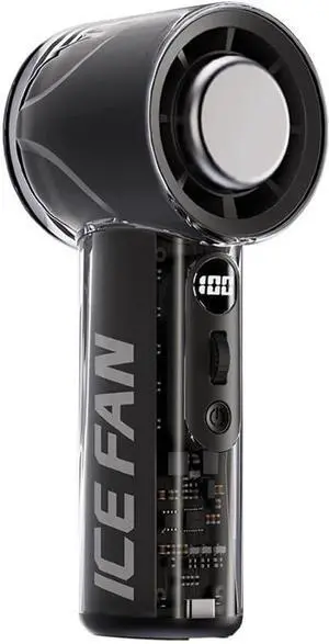 Mini Handheld Cooling Fan With Ice Compress 100 Speed Settings, Transparent Foldable USB Fan With LED Digital Screen, Lightweight Personal Fan(black)