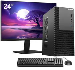 AQVIN MTX60 Business Desktop PC Tower with 24" Monitor | Intel Core i7 Up to 4.60GHz | 16GB DDR4 RAM | 512GB SSD | WiFi & Bluetooth | Windows 11 Pro
