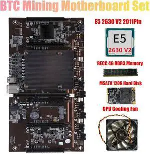 X79 H61 BTC Mining Motherboard 5X PCI-E Support 3060 3070 3080 GPU with E5 2630 V2 CPU RECC 4GB DDR3 Memory 120G SSD+Fan