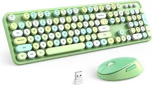 Keyboard Mouse Set, 2.4GHZWireless 104 Key Keyboard and Mouse Set with Intelligent Power Saving Technology (Green Mixed Colors)