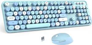 Keyboard Mouse Set, 2.4GHZWireless 104 Key Keyboard and Mouse Set with Intelligent Power Saving Technology (Blue Mixed Color)