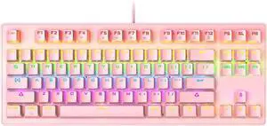 LJFLI Gaming Keyboard Mechanical LED Multi-Luminous Floating keycap Green Shaft 87-Key pluggable Shaft Set Girls Cardio E-Sports Games Office