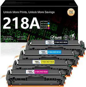 218A Toner Cartridges 4 Pack (with Chip) 3301fdw Replacement for HP 218A 218X Work for HP Color LaserJet Pro MFP 3301fdw 3201dw 3301sdw 3301cdw Printer High Yield Ink W2180A W2180X (4 Pack, B/C/Y/M)