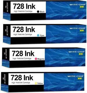 728 Ink Cartridges Compatible for HP 728 728XL DesignJet T830 MFP and T730 Plotter Printer (300ML Matte Black 150ML Cyan Magenta Yellow 4-Pack)