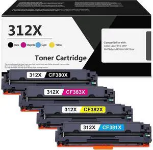 312X Toner Cartridges with Chip High Yield Replacement for 312X Toner Cartridge CF380X CF381X CF382X CF383X with Color Pro MFP M476dw M476dn M476nw Printer (Black Cyan Yellow Magenta)
