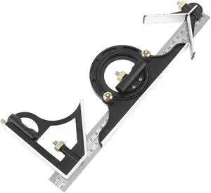 ChgImposs 12"/300mm Adjustable Sliding Combination Square Ruler & Protractor Level Measure Measuring Set, Inch/Metric