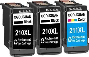 OGOUGUAN Remanufactured Ink Cartridge Replacement for Canon PG-210XL CL-211XL 210 211 XL Black Color Use with Pixma MP495 MX410 MX340 MP250 MX320 MP490 MP499 MX350 MX330 iP2702 (2 Black,1 Color)