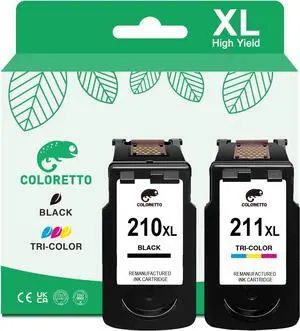 COLORETTO 210 211 XL Pg-210XL Cl-211XL Ink Cartridge Compatible with Canon Pixma MP230 MP240 MP250 MP280 MP480 MP495 MX320 MX340 MX350 MX410 MX420 IP2700 IP2702 Printer 1 Black 1 Color 2-Pack