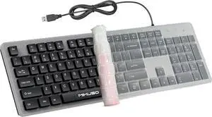 MIKUSO Quiet Wired Computers Keyboard with Cover Comfortable Hand Feel,Laser Engraved Characters,12 Multimedia Keys USB Interface Suitable for Laptop PC,Full Size 104 Keyboards, Plug and Play, Office