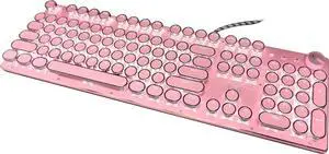 keeda Professional Gaming Mechanical Keyboard Pink, 104 Key Retro Punk Typewriter-Style Mechanical Key, White Backlight Retro Round Keycap, Programmable Macro Functionality (Pink)