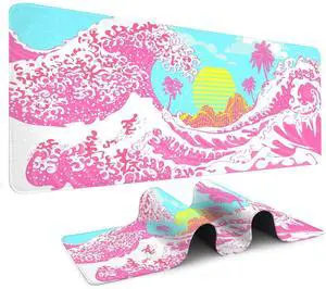 Alpha Fit Pink Sakura Great Wave Gaming Mouse Pad XL (31.5" x 11.8") - Cute Cherry Blossom Japanese Art Desk Mat - Kawaii Aesthetic Extended Mousepad