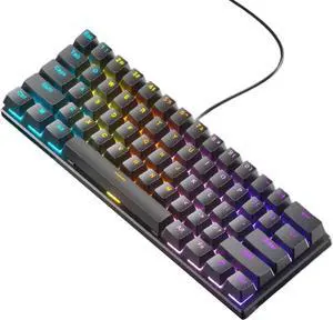 Mechanical Gaming Keyboard, LED Backlight 61 Keys Ultra Compact Computer Keyboard with Blue Switch, Detachable Type C Cable 60% Mini Office Keyboard for for OS X PC Laptop