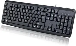 XUZHID Ergonomic USB Wire Keyboard 104Keys with Water Resistant & Ergonomic Layout Keyboard for Office and Industrial Use
