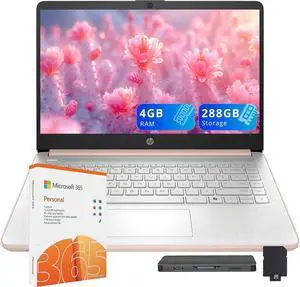 HP Stream 14" HD Laptops for Student & Business, Intel Processor N150, 4GB RAM, 288GB Storage (128GB UFS+160GB Docking Station Set), Copilot AI, 1-Year Office 365, 720p Camera, Win 11, Gold
