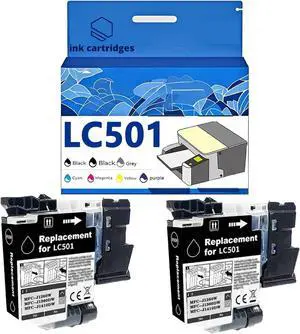 LC501 LC501BK LC501C LC501Y LC501M Ink Cartridges Compatible for MFC-J1260W MFC-J1360DW MFC-J1410DW Inkjet Printers, Leak-Proof Design Crisp Printing 2*Black