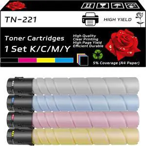 TN-221 Toner Cartridges Compatible for Konica Minolta bizhub C227 C287 Printers, with Chip, High Yield 25000 Pages, Clear Printing (4-Pack BK/C/M/Y)