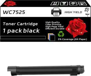 WC7525 Toner Cartridge Compatible for Xerox Work Center 7525 7530 7535 7545 7556 7830 7835 7845 7855 7970 EC7836 EC7856 Printers, with Chip, High Yield 36000 Pages, Clear Printing (1 Pack Black)