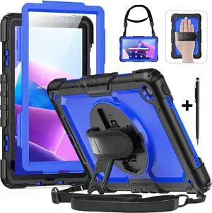 BONAEVER Case for Lenovo Tab M10 Plus 3rd Gen 10.6 inch 2022 Model TB-125F TB-128FShockproof Cover with 360 Rotating Stand /Hand Strap[Screen Protector] Shoulder Strap S Pen Holder